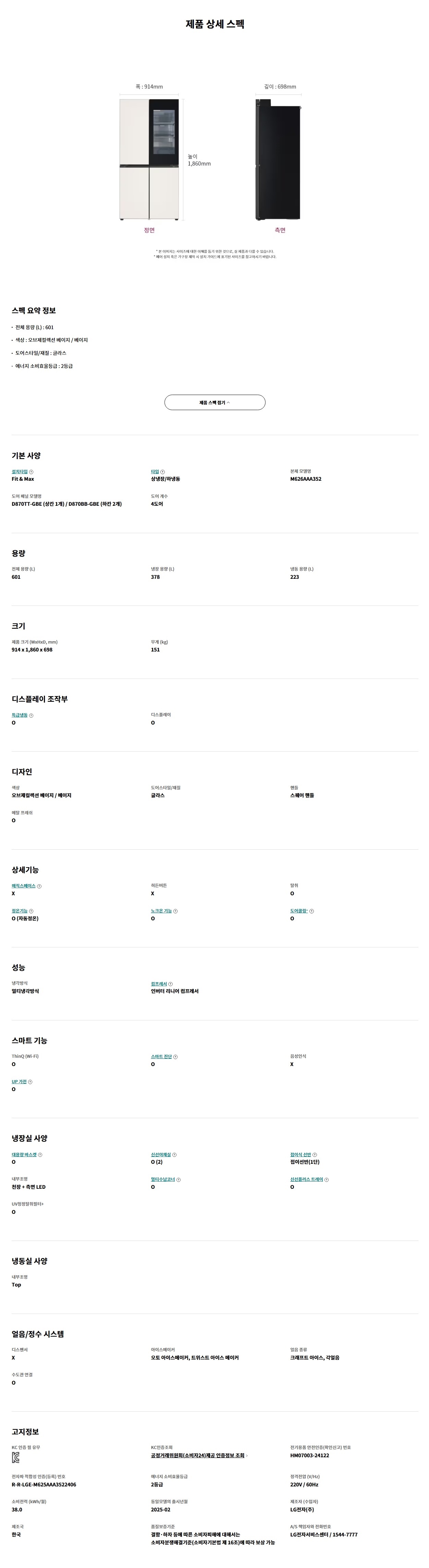 전체 용량 (L) : 601