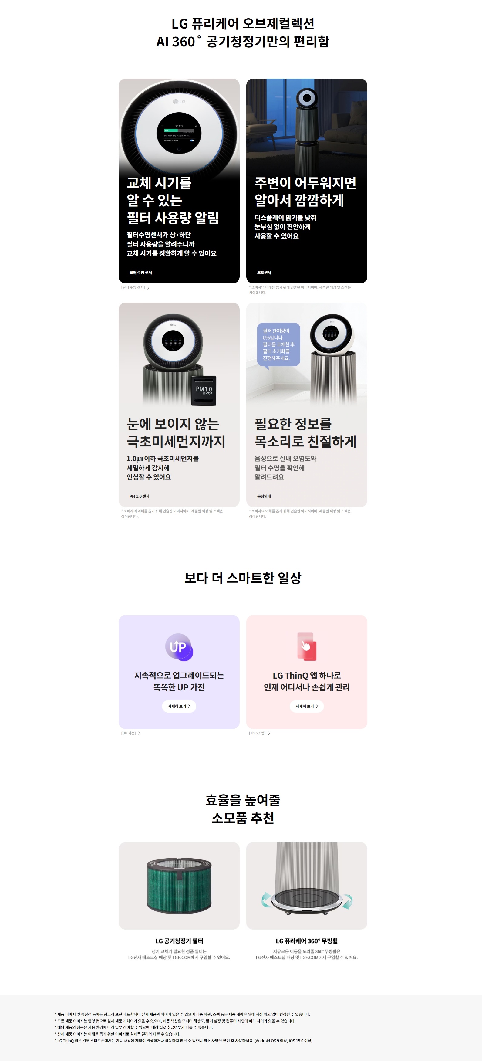 LG 퓨리케어 오브제컬렉션 AI+ 360˚ 공기청정기 (M 필터) 114㎡ AS355NSNA