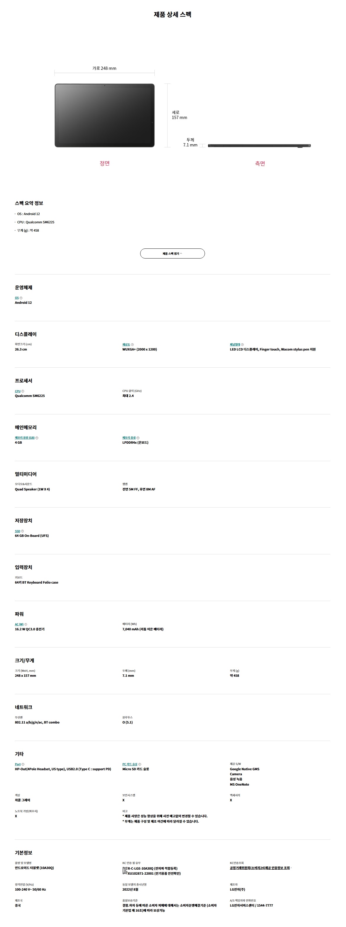 LG 울트라 탭 퀄컴 태블릿 10A30Q-LQ12ML