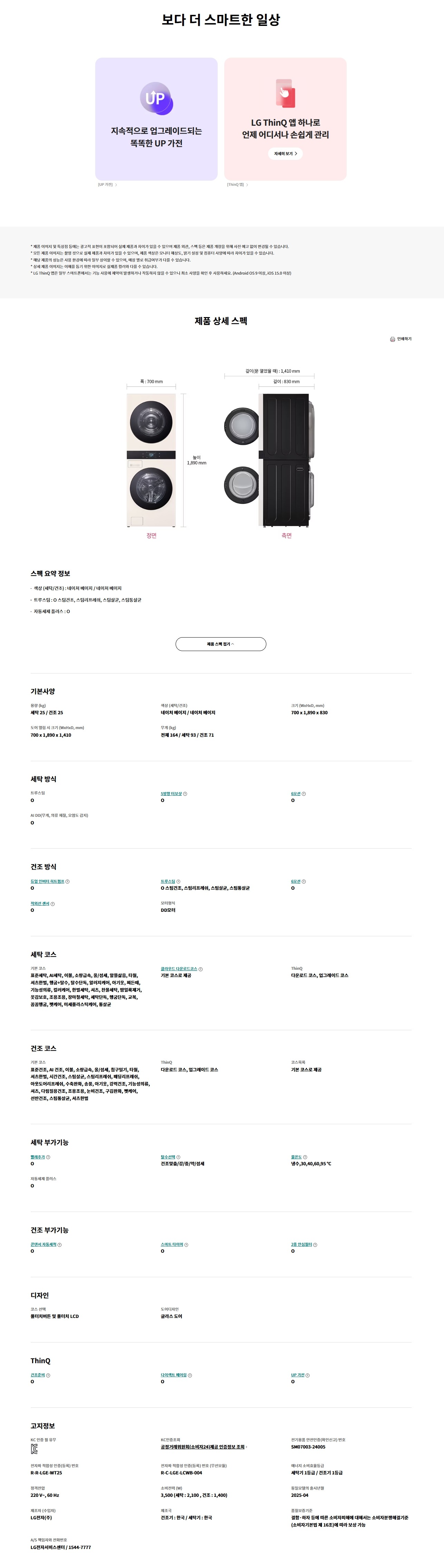 LG 트롬 AI 오브제컬렉션 워시타워 25/25kg 1등급 WA2525