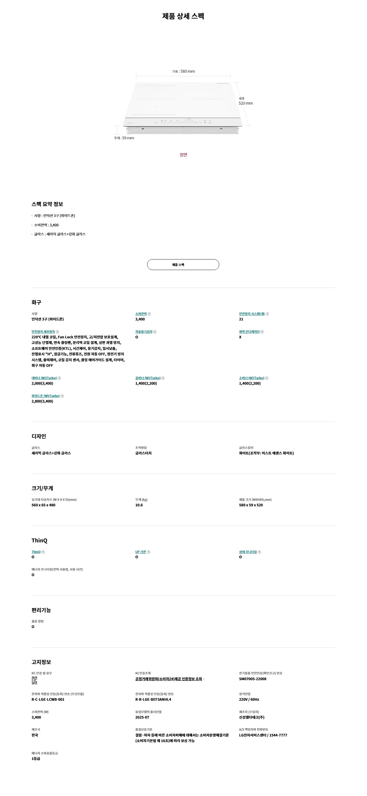 LG 디오스 오브제컬렉션 인덕션 빌트인 (와이드존, 프레임리스, 케이스 미포함) BEF3ANSLE