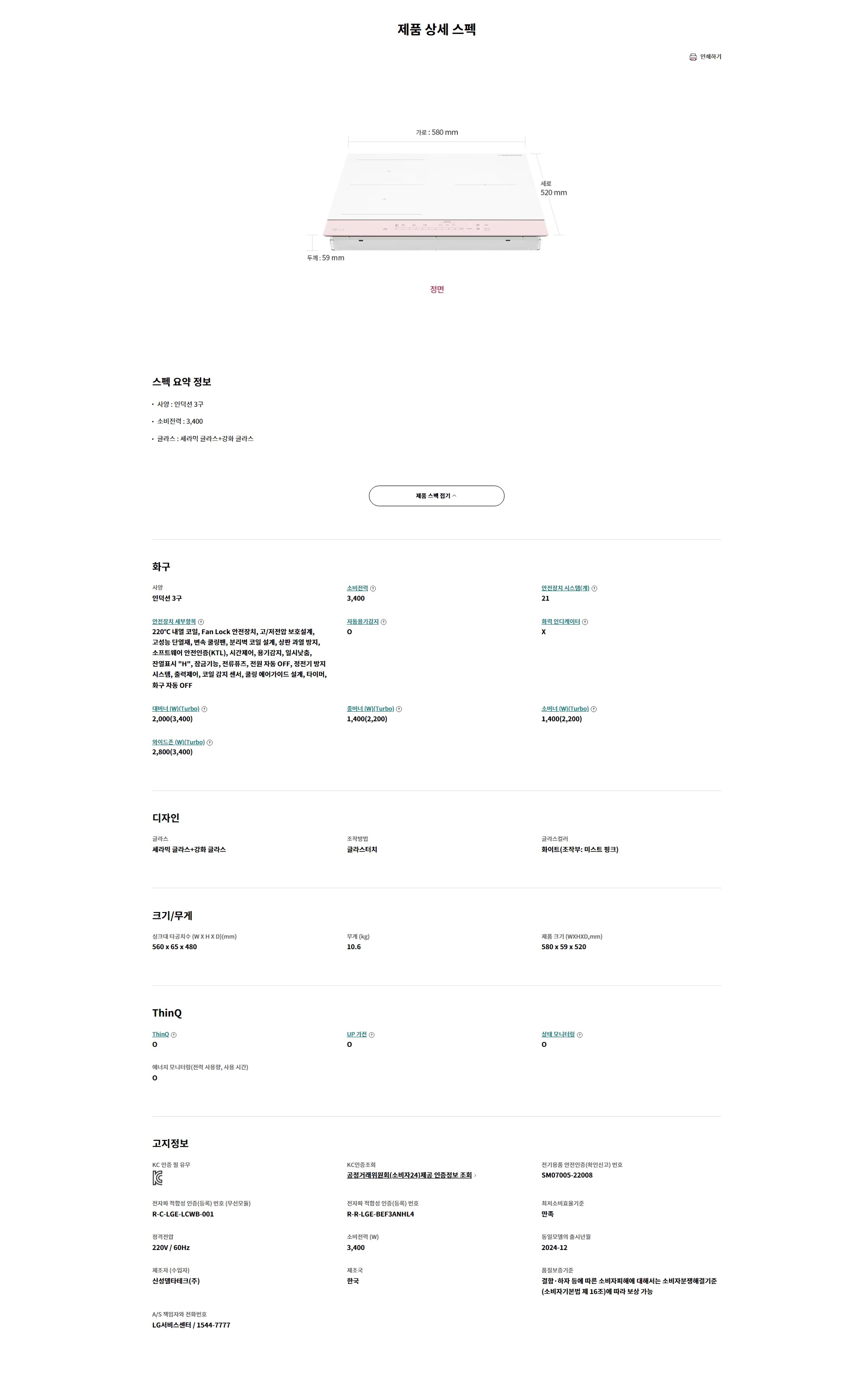 사양 : 인덕션 3구