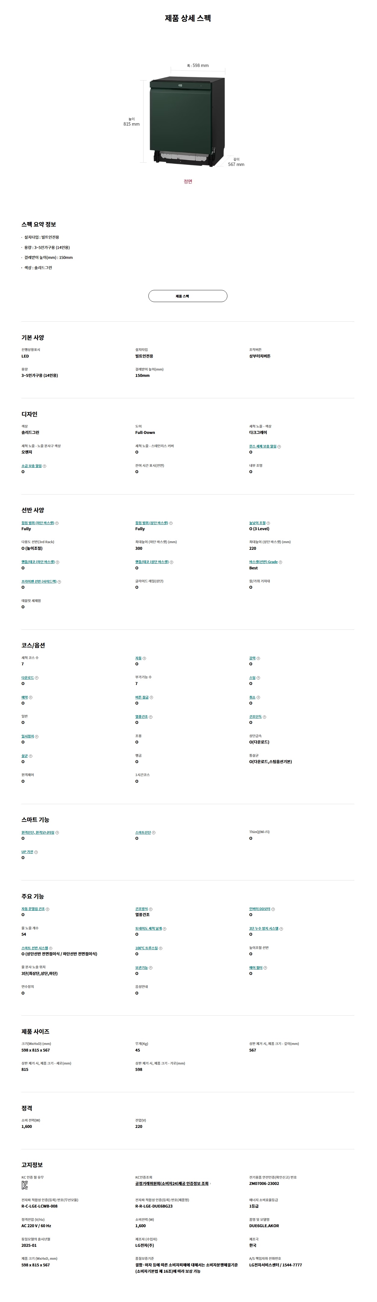 LG 디오스 오브제컬렉션 식기세척기 빌트인전용 14인용 1등급 열풍+스팀 DUE6GLE