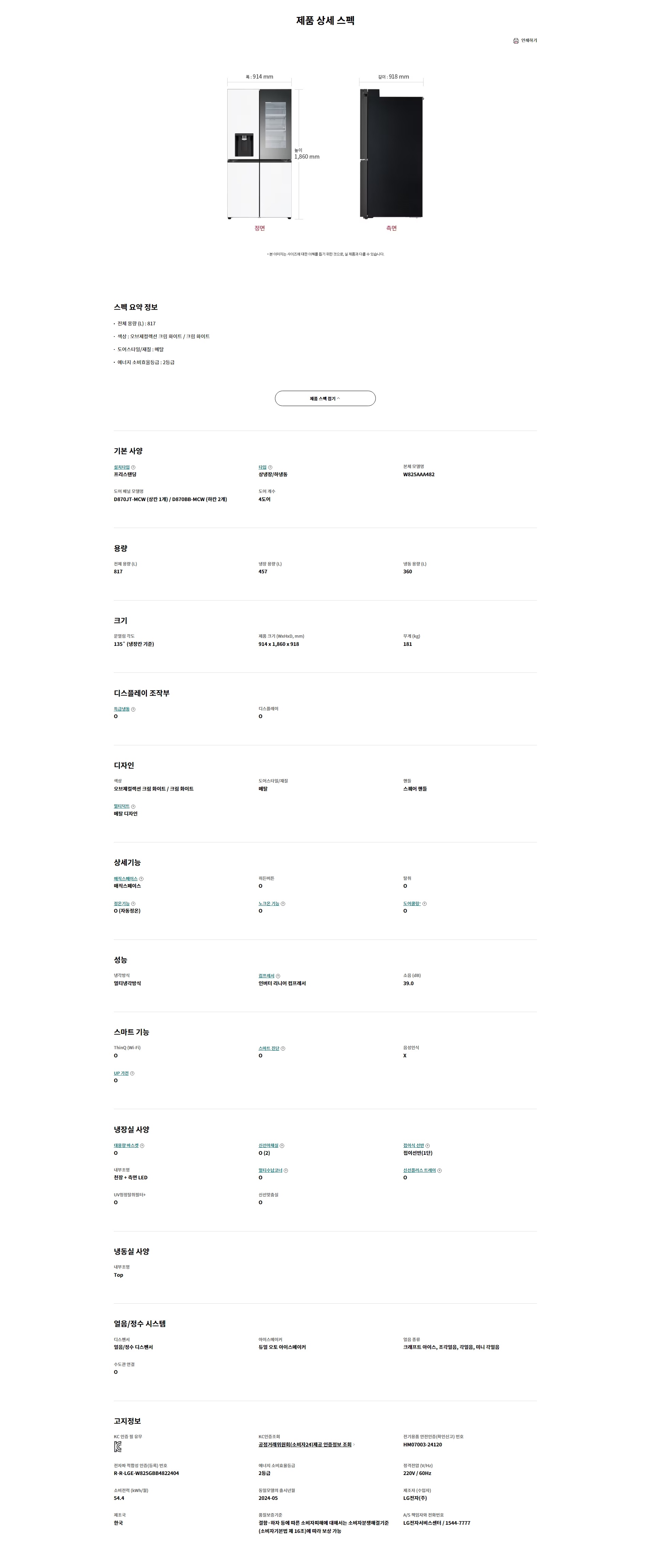 LG 디오스 오브제컬렉션 STEM 얼음정수 냉장고 (노크온 매직스페이스) 817L 2등급 W825MHH482S