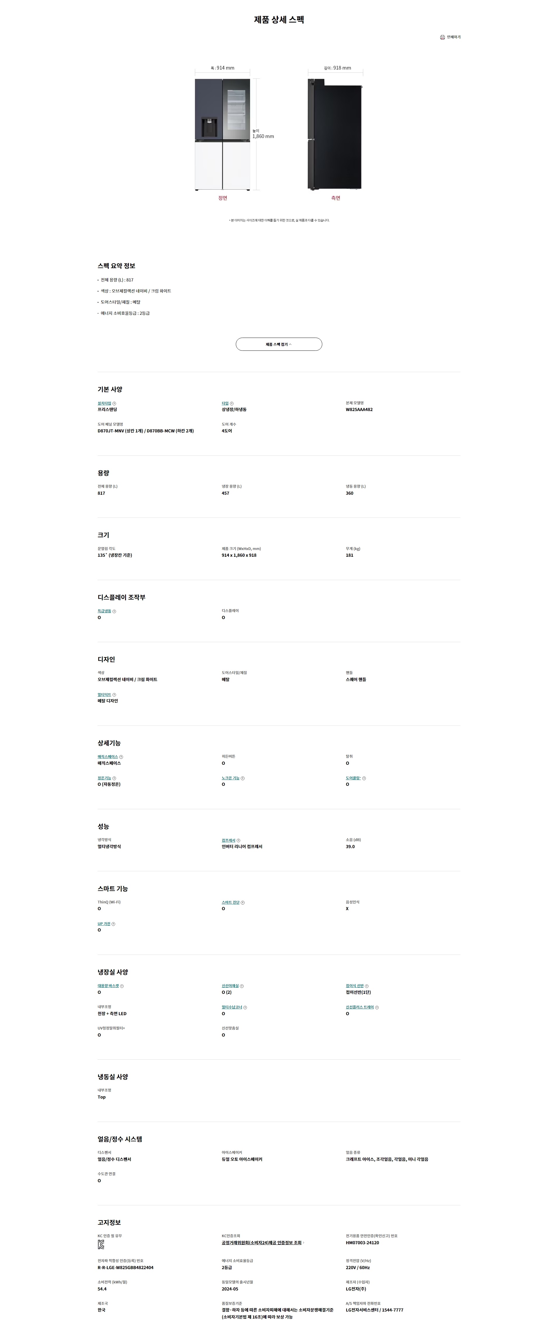 LG 디오스 오브제컬렉션 STEM 얼음정수 냉장고 (노크온 매직스페이스) 817L 2등급 W825MNH482S