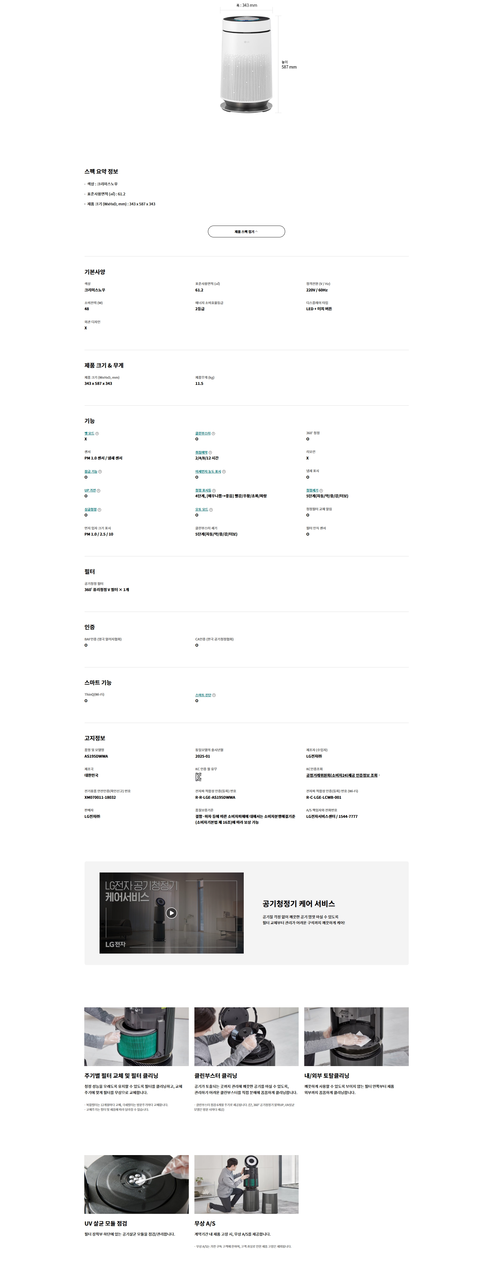LG 퓨리케어 360˚ 공기청정기 플러스 61.2㎡ AS195DWWA